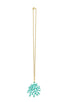Dieser exquisite aquamarinfarbene, korallenförmige Anhänger ist ein Muss für einen Hauch von Sommerstil und ideale Strandaccessoires. Aus ethisch bezogenem Naturhorn gefertigt, wird er von erfahrenen Kunsthandwerkern sorgfältig zu einem atemberaubenden Korallendesign geformt und mit einem glatten türkisfarbenen Lack versehen. Der Anhänger ist an einer 20-Zoll vergoldeten Silberkette befestigt und bietet ein luxuriöses Gefühl. Handgefertigt im ländlichen Vietnam, unterstützt dieses Stück lokale Gemeinschaften und hält sich an fairen Handel. Perfekt zum alleinigen Tragen oder zum Schichten.