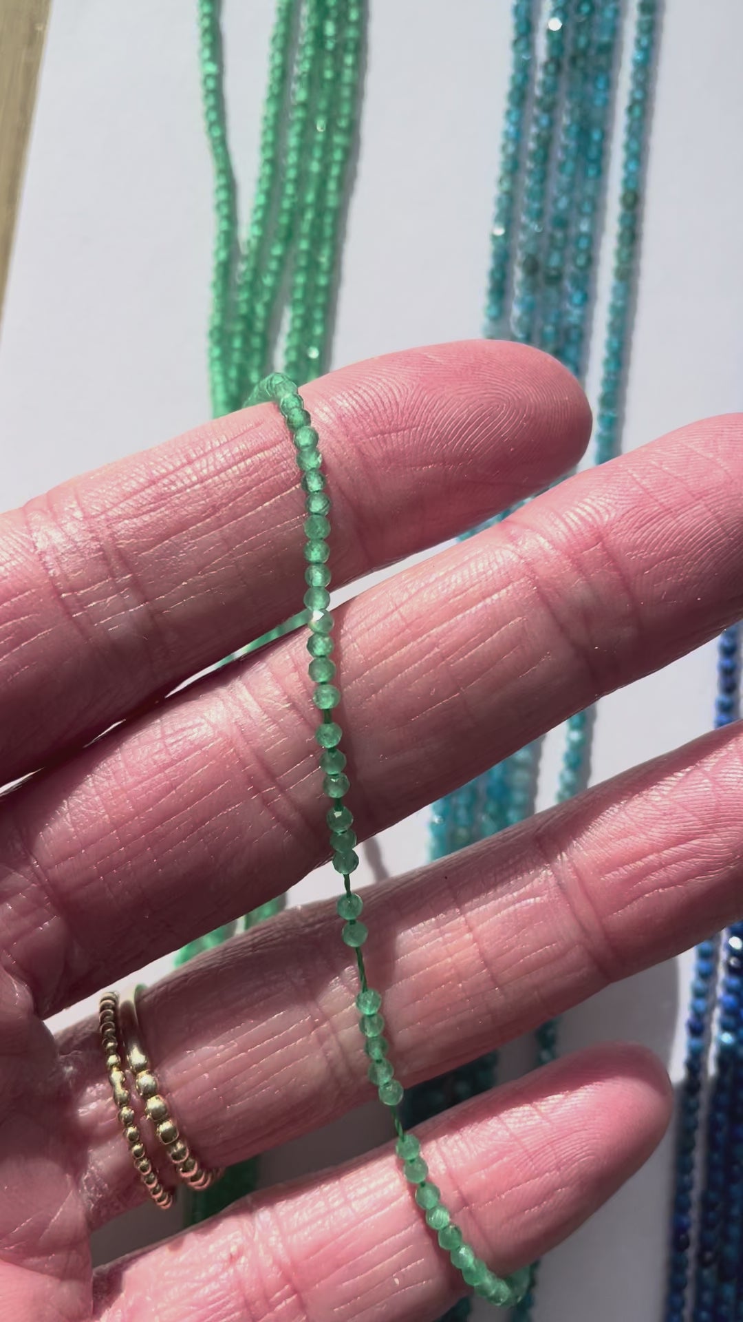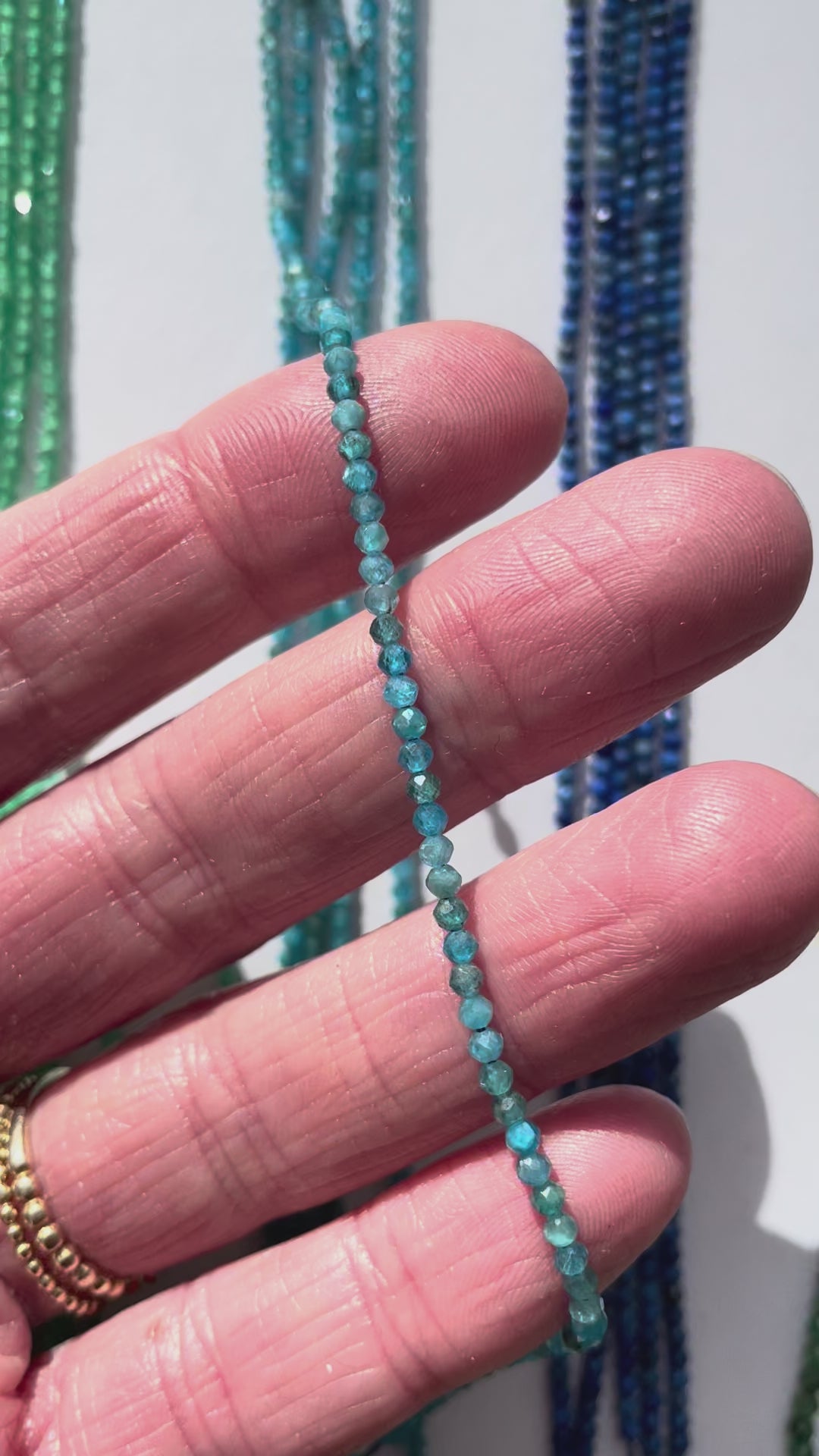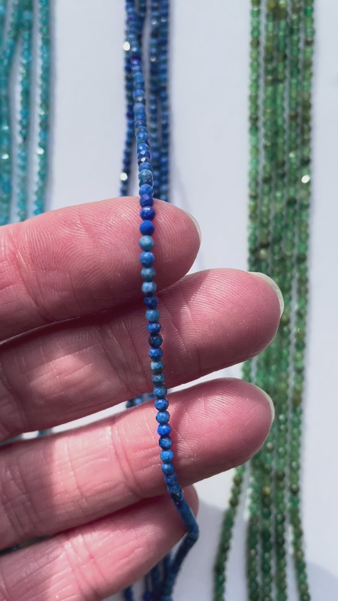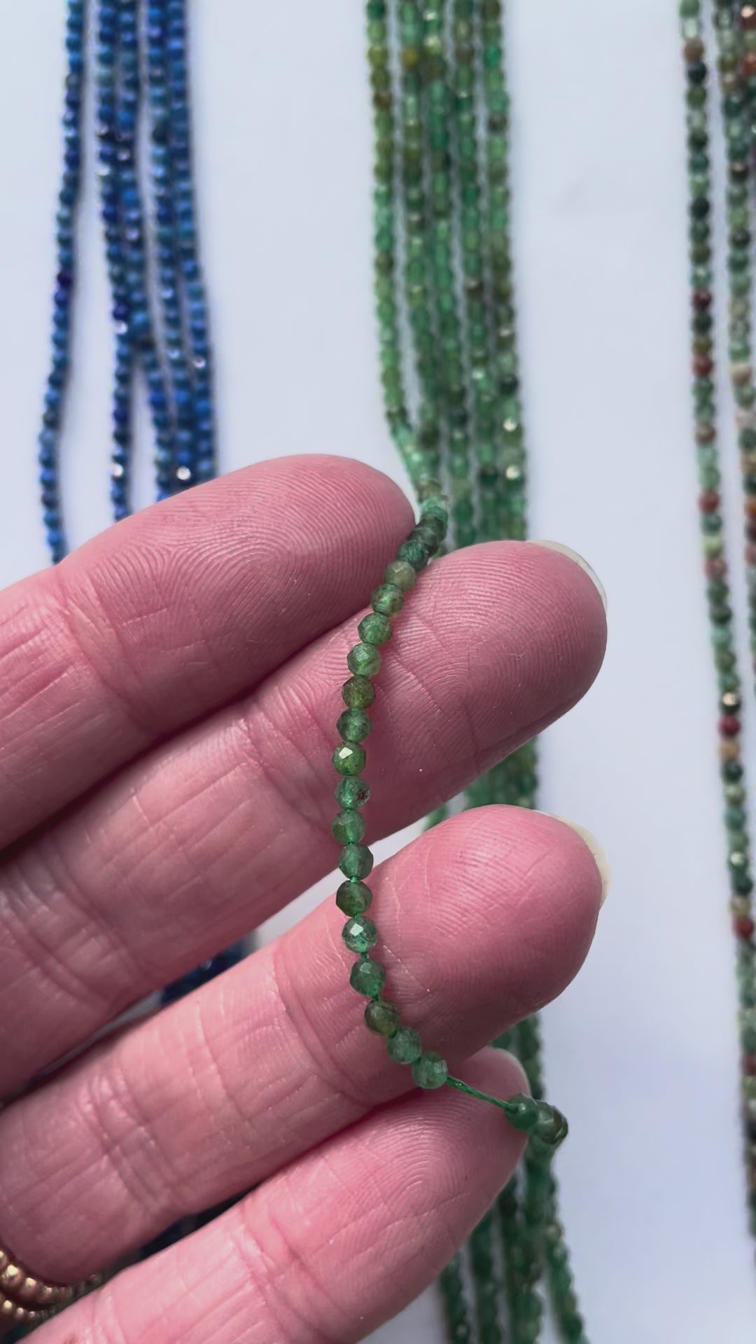 Bei sehr feinen Strängen ist die Steinqualität besonders entscheidend, weil dadurch das wenig Steinmasse vorhanden ist, die Qualität der Farbe besonders zum tragen kommt.