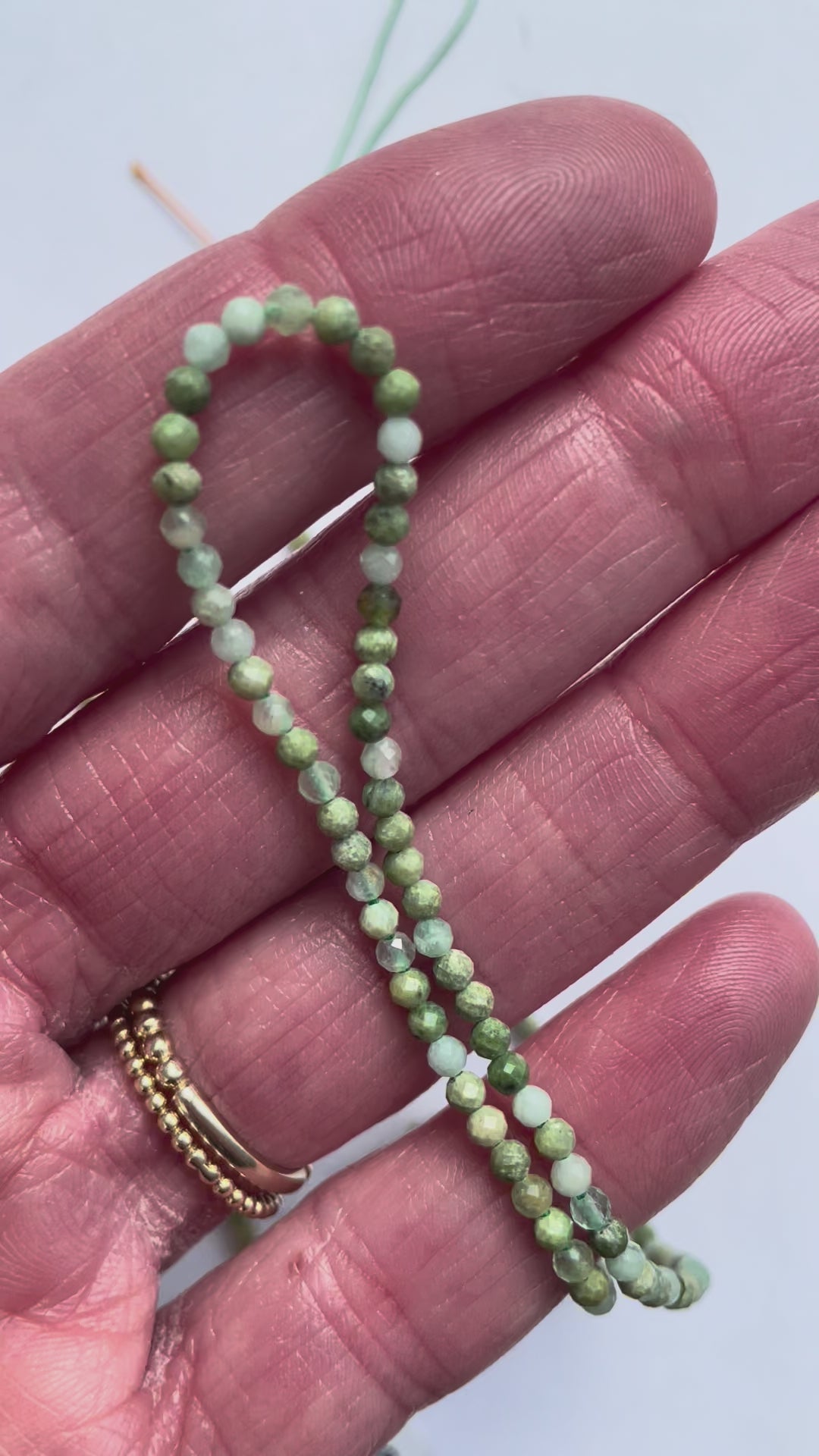 Bei sehr feinen Strängen ist die Steinqualität besonders entscheidend, weil dadurch das wenig Steinmasse vorhanden ist, die Qualität der Farbe besonders zum tragen kommt.